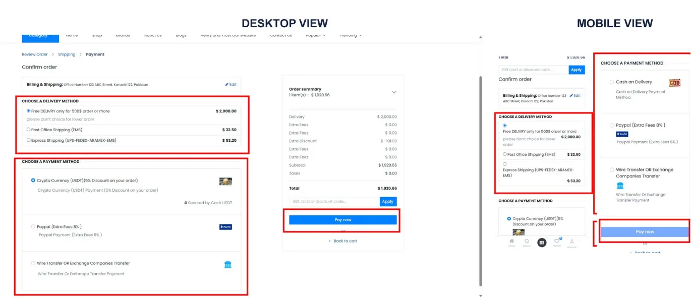 Note: All payment methods are for informing our team of your preferred payment option and confirming your order, not for actual online payment. Once confirmed, our team will review and proceed with shipping your order.